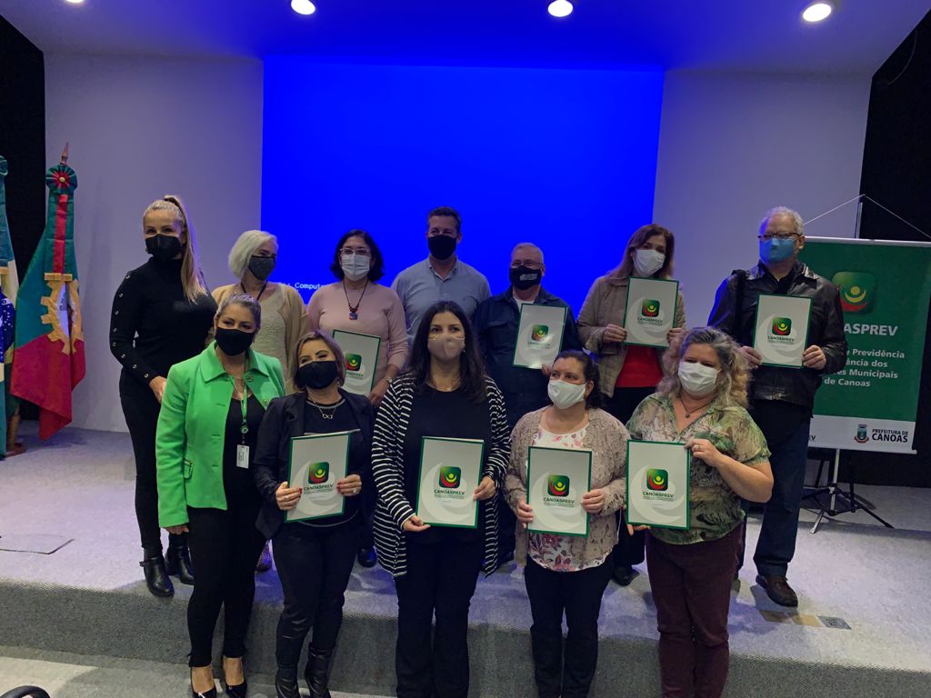 Na tarde desta quarta-feira (08), o Instituto de Previdência e Assistência dos Servidores Municipais de Canoas, o Canoasprev, realizou a cerimônia de entrega das portarias de aposentadoria do mês de agosto de 2021. No total, nove dos 16 servidores compareceram ao ato e foram saudados pelo presidente do Canoasprev, Valter Nagelstein e a vice Clarice Lazzarin.